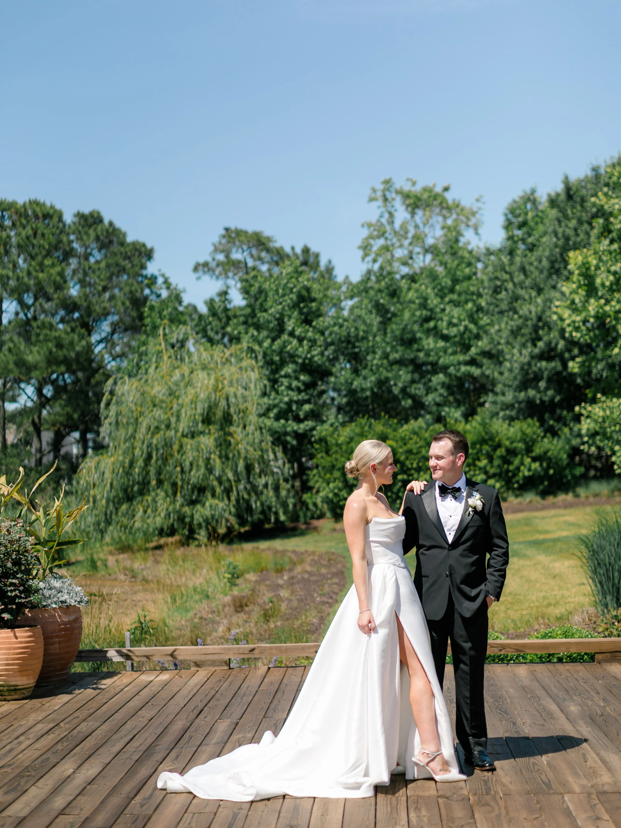 Nestled on the beautiful Delaware coastline, Shelby and Drew’s wedding seamlessly blended classic charm with modern touches. Against the backdrop of the picturesque Bayside Resort Golf Club, the couple embraced a refined color palette of soft blues and whites, enhancing the venue’s natural beauty and creating a serene, inviting atmosphere.